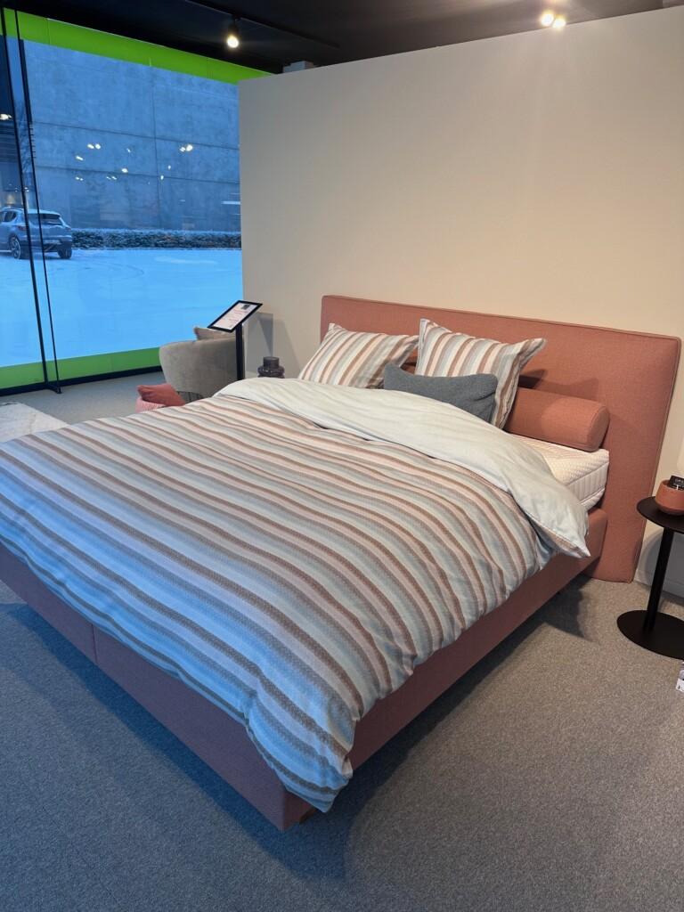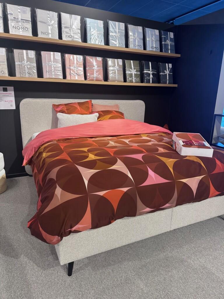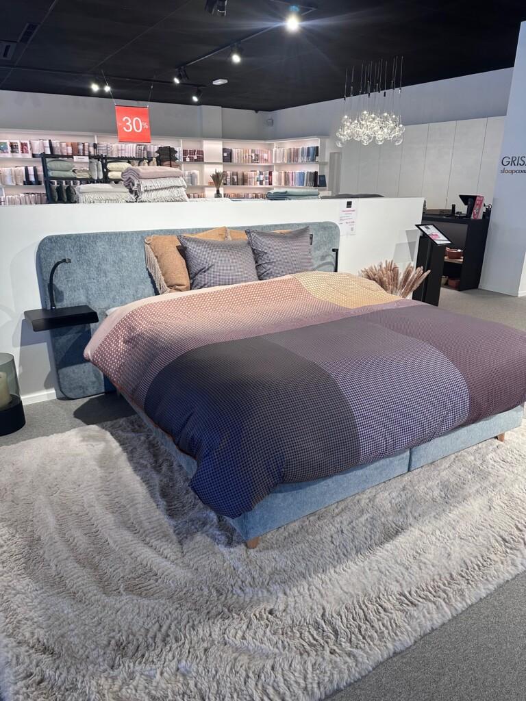 verschillende toonzaal boxsprings, textiel en decoratie in uitverkoop.